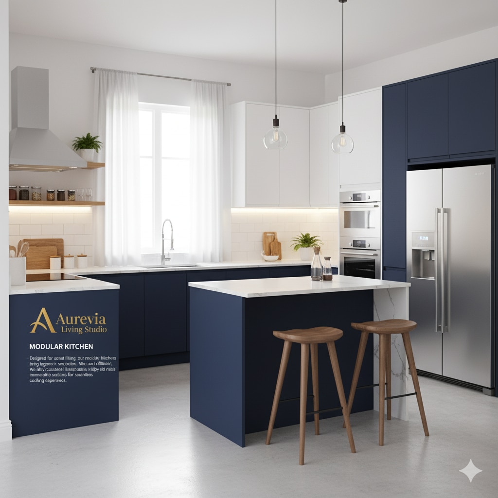Modular Kitchen: Designed for smart living, our modular kitchens bring together aesthetics and efficiency. We offer customized layouts, high-quality materials, and innovative storage solutions for a seamless cooking experience.